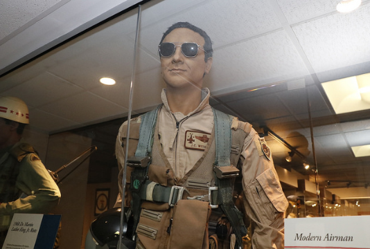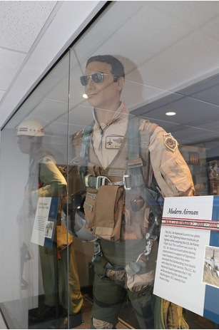 This D.C. Air National Guardsman pilots the F-16C Fighting Falcon multi-role jet fighter, while wearing the U.S. Air Force Flight Suit. D.C. Air National Guard pilots wore this uniform during deployment in support of Operation Iraqi Freedom where t5hey were awarded the Outstanding Unit Award with valor for their service. The D.C. Air National Guard operates the F-16C, while protecting the skies over the Nation’s Capital, twenty-four hours a day.