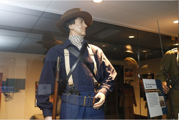 This Soldier served as a member of the D.C. National Guard’s 1st District of Columbia Volunteer Infantry, earning credit for the Santiago Campaign, during the Spanish-American War. His model 1895 woven cartridge belt replaced the antiqued leather cartridge box and marked the beginning of modern load bearing equipment.