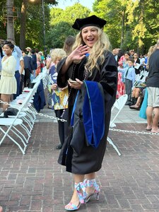VIRGINIA BEACH, VA - U.S. Air Force 1st Lt. Kristy Winkler, Medical Administration Officer, 113th Wing Medical Group, stands for a photograph during a commencement ceremony in Virginia Beach, VA, on May 10, 2025. 1st Lt. Winkler completed a Doctor of Strategic Leadership (DSL) with the assistance of the District of Columbia National Guard Tuition Assistance Program. (Photo courtesy of 1st Lt. Kristy Winkler)
