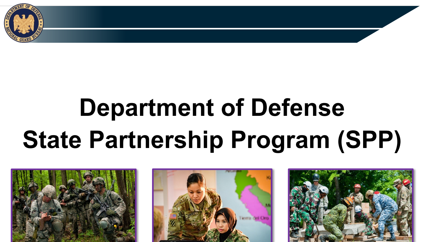 Through SPP, the National Guard conducts military-to-military engagements in support of defense security goals but also leverages whole-of-society relationships and capabilities to facilitate broader interagency and corollary engagements spanning military, government, economic and social spheres.